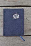 2012Poezie album. Bekleed met linnen waarop zilveren sterren. Poppekop, strik en rosakwarts.