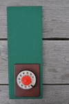 2012Handgebonden noteboek. Gebonden in leer met de lens van een oude knijpkat waaronder een dubbeltje uit 1942.